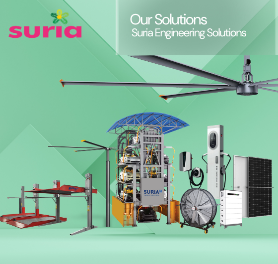 Our journey led to the introduction of the Grande and X Series Gearless Motors and a rebranding in 2021, marking a new chapter in creating smarter solutions. Today, our product lines include Giant HVLS Fans, Suria Energy Solutions offering renewable energy technologies, and Suria Parking Solutions for advanced parking systems.